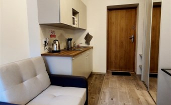 Każda z kawalerek składa się z pokoju, podzielonego na strefę dzienną oraz część jadalną, aneksu kuchennego oraz łazienki z wc.