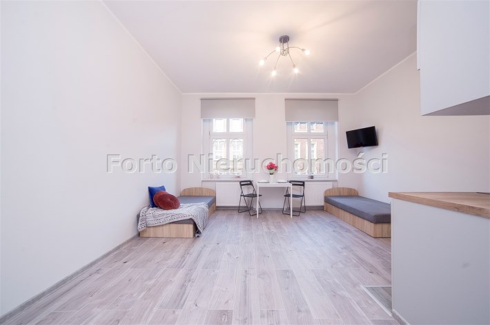 Przedmiotem sprzedaży jest nieruchomość lokalowa stanowiąca odrębne prawo własności, składająca się z pięciu samodzielnych, wynajętych kawalerek o różnych metrażach, w pełni umeblowanych i wyposażonych.