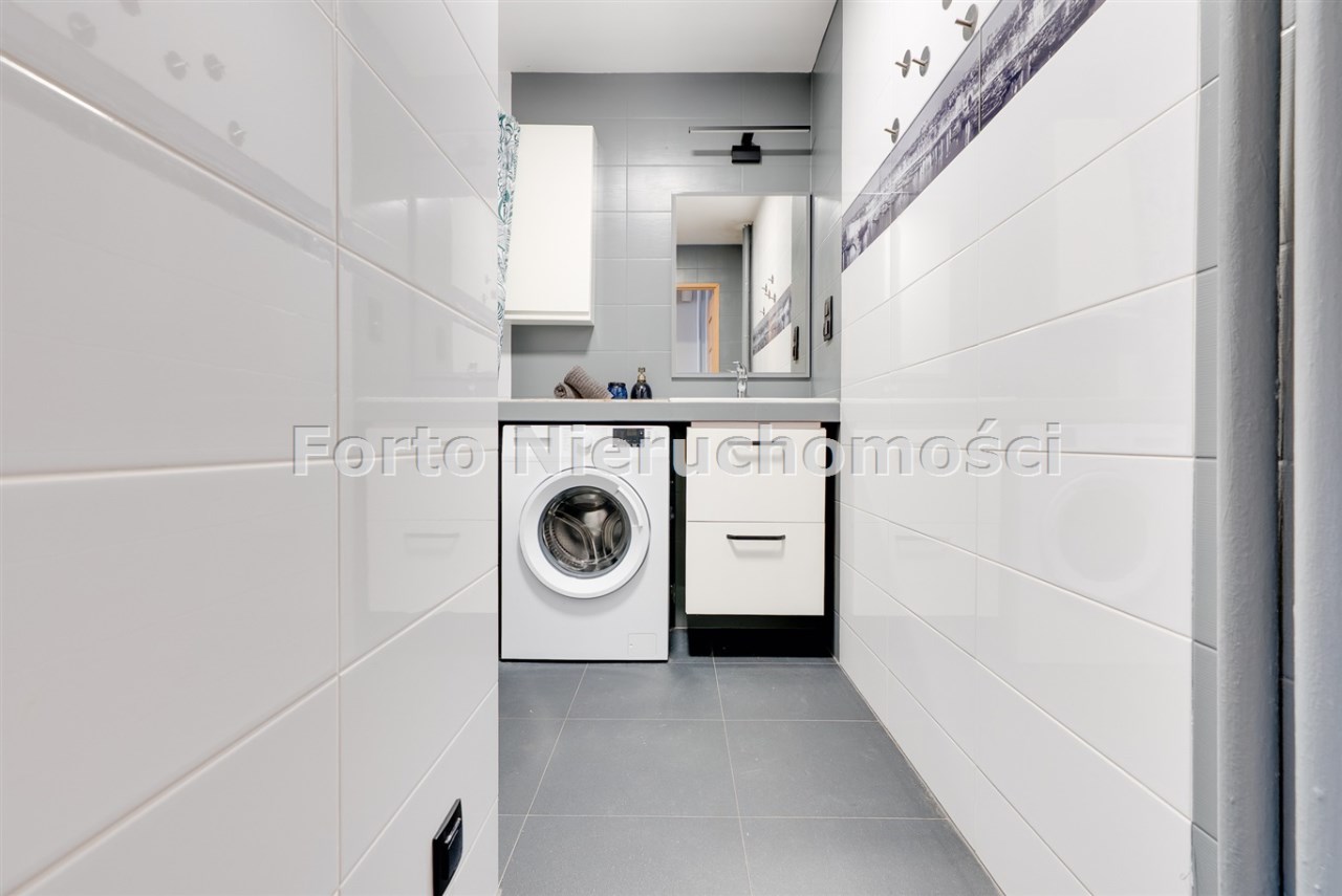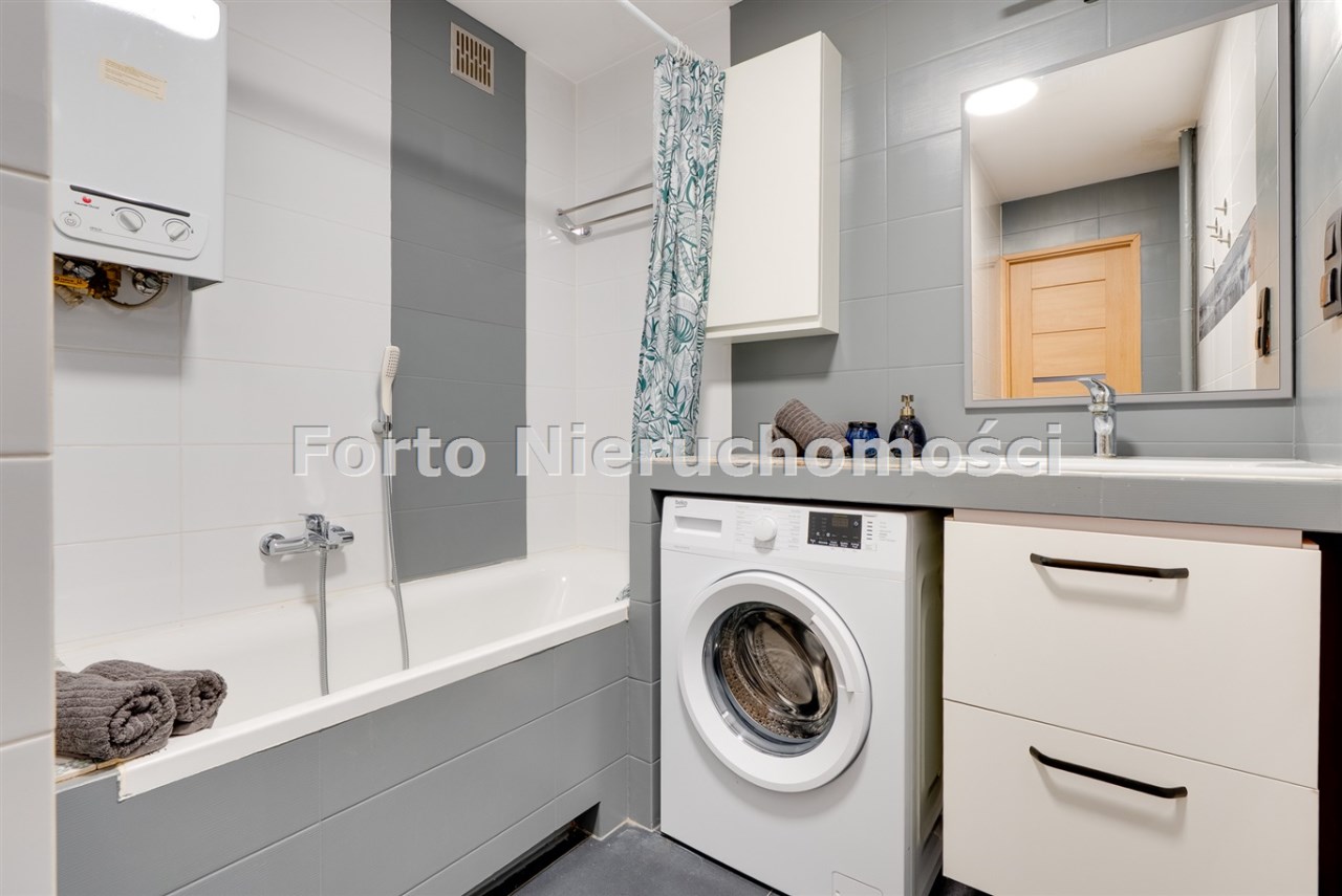 Mieszkanie przeszło generalny remont w 2016 roku, podczas którego wymieniono instalacje, zrobiono wylewki, wyrównano ściany. Na podłogach położone zostały panele, w sypialni miękka wykładzina, a w kuchni i łazience kafle. Dodatkowym atutem jest podwieszany sufit z wyciszeniem wełną, co znacząco podnosi komfort akustyczny w mieszkaniu.